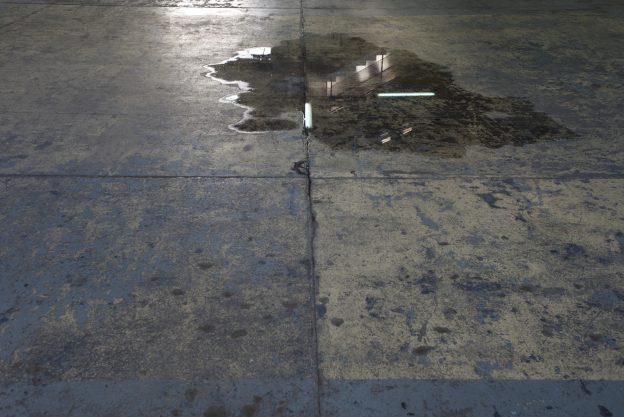 Les eaux dormantes prennent la forme de flaques d’eau dont le volume est déterminé par une quantification sociale, économique ou démographique, à raison d’une goutte métrique (0,05 ml) par unité. Les interdit·es reprend une statistique de la Banque de France recensant le nombre de personnes inscrites au Fichier central des chèques au titre d’une interdiction bancaire ou judiciaire d’émettre des chèques (dernier rapport publié par l’Observatoire de l’inclusion bancaire, 2024). Elle forme une flaque de 39,68 litres.