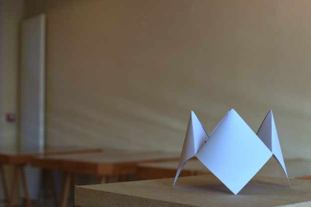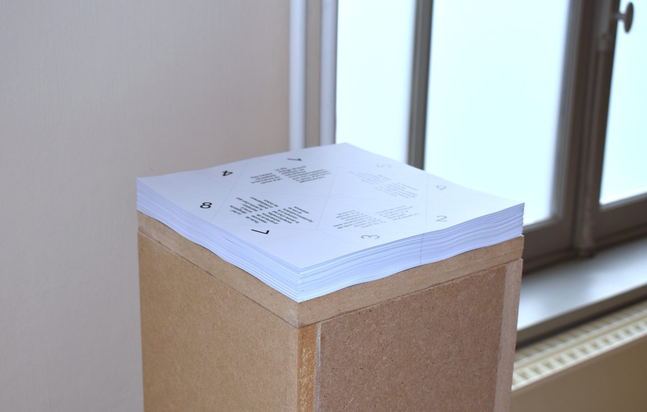 Based on the divinatory principle of the eponymous children’s game, this paper fortune teller lists the main reasons that have led to the closing down of contemporary art centers in France in recent years. Although each refers to the actual closing down of one or more venues, the sentences provided for reading have been taken out of context and made anonymous. They are taken from various articles, generally published in the local press to announce or warn of the closing down.